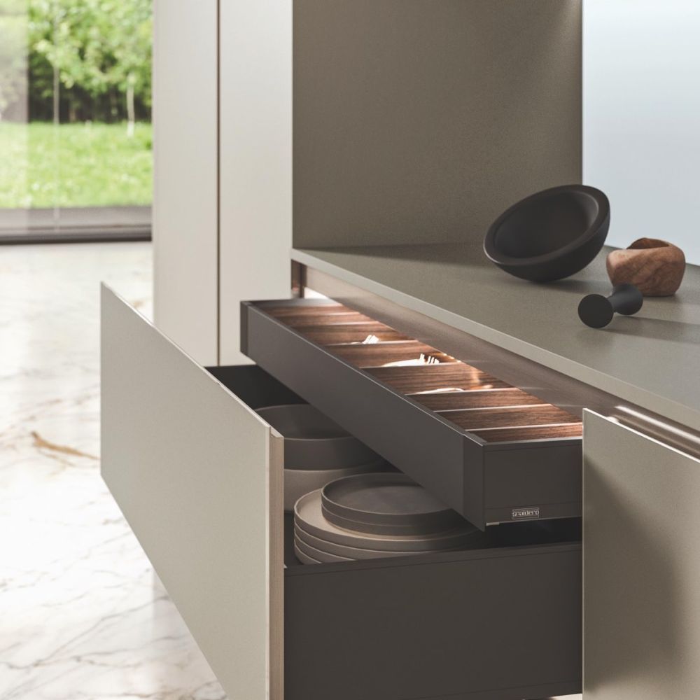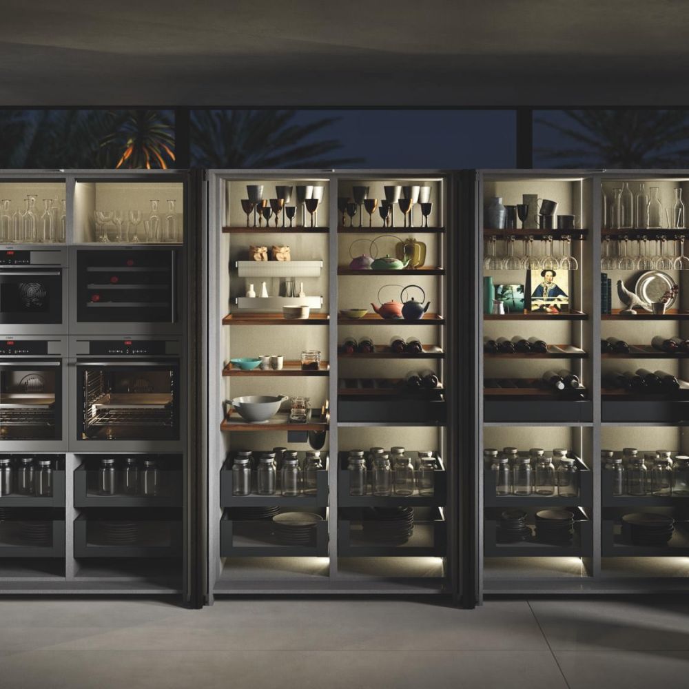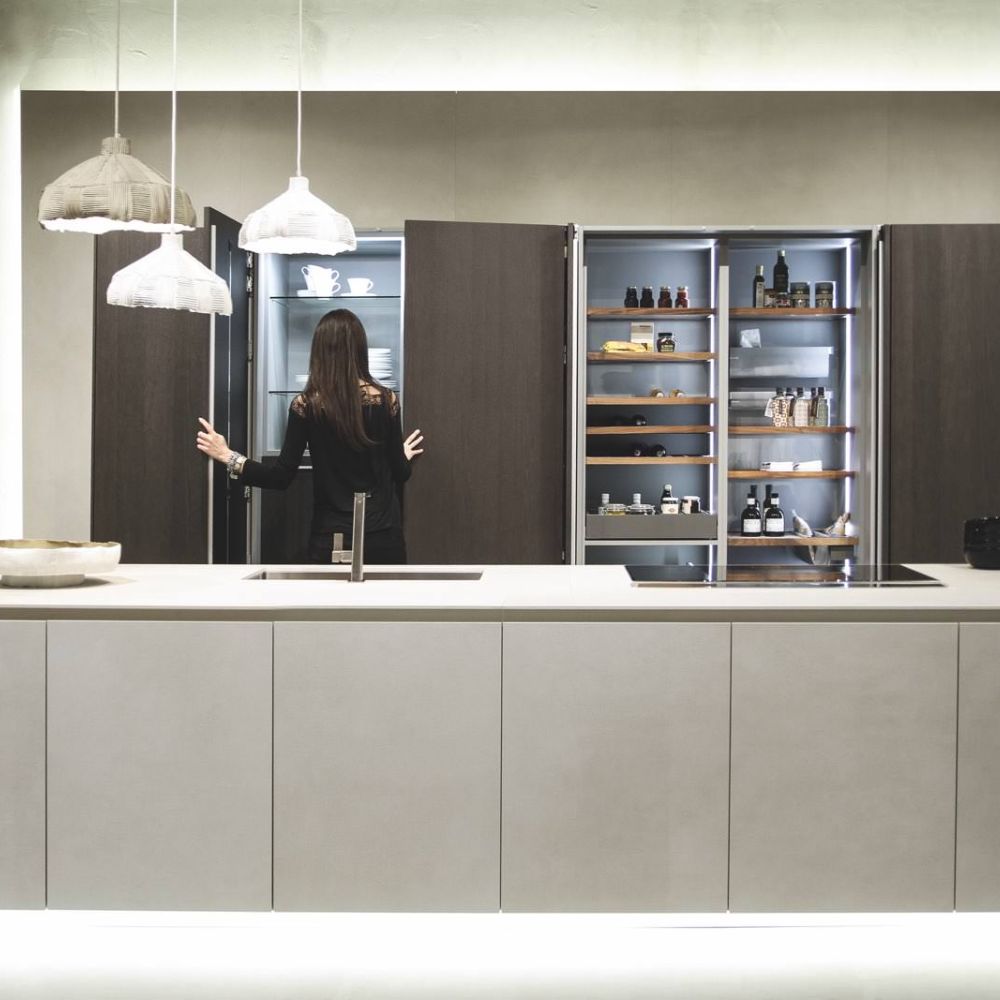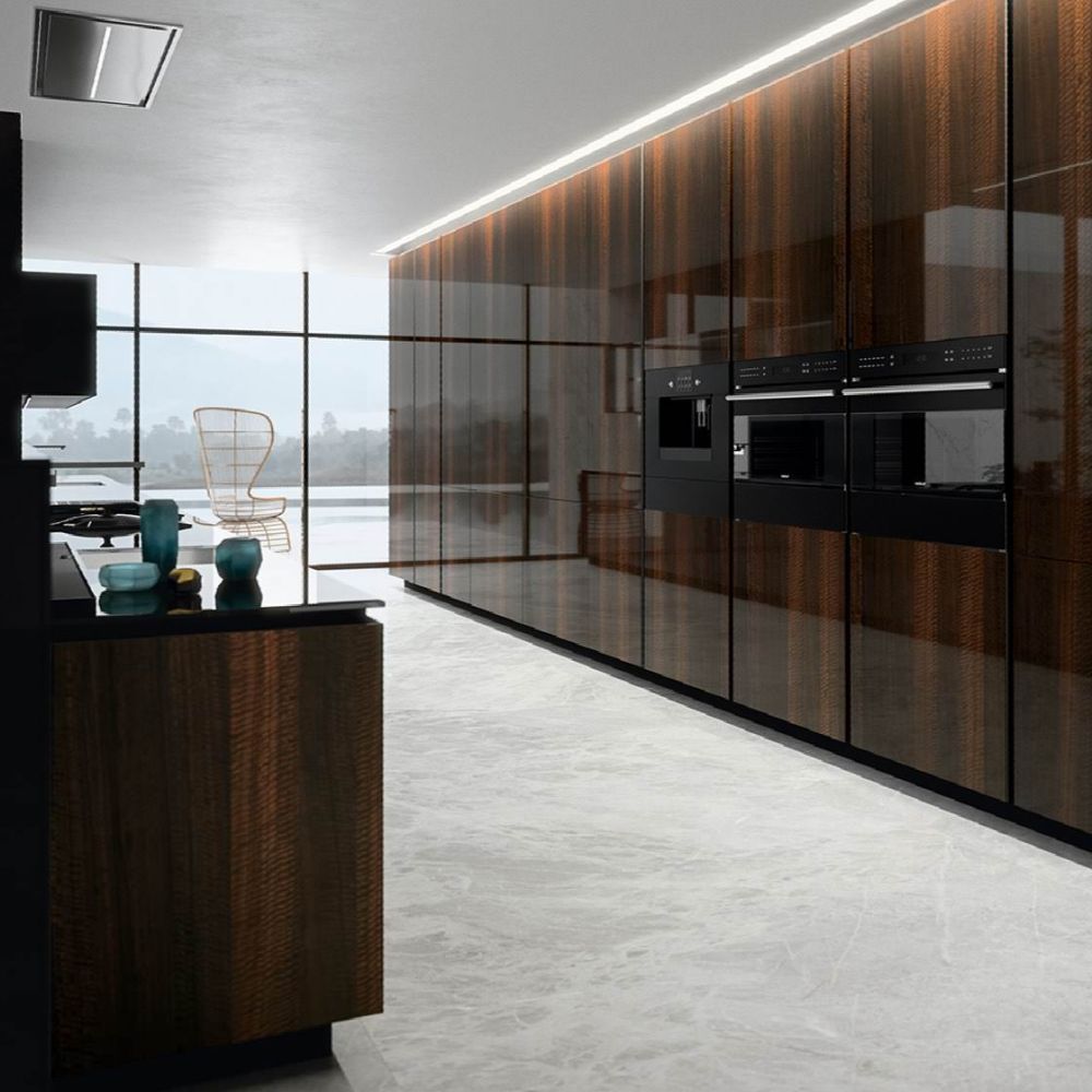 Every tiny detail of the design and quality. The Way kitchen’s satin glass door is 4 mm thick. The glass is set atop a sturdy, lightweight aluminum frame. Glass is entirely non-deformable, unlike other materials that bulge, corrode, or degrade.