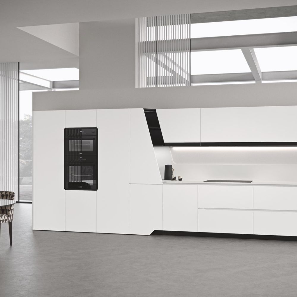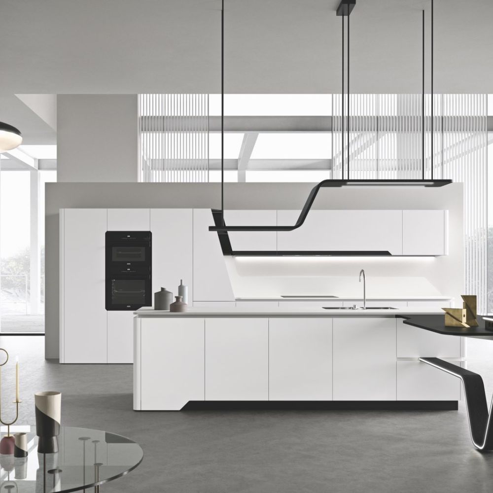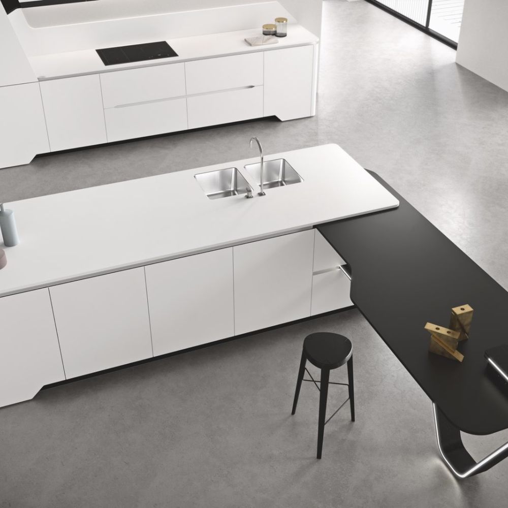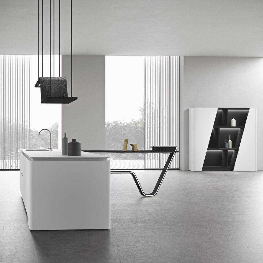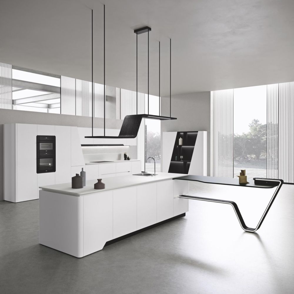 Las geometrías perfectas hacen de esta cocina un lugar de vida y entretenimiento, mientras que la ergonomía se une a la funcionalidad.