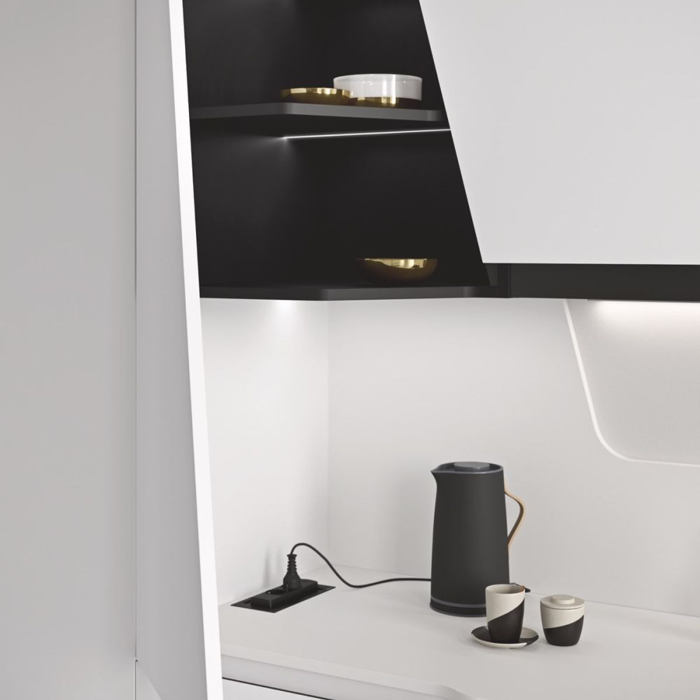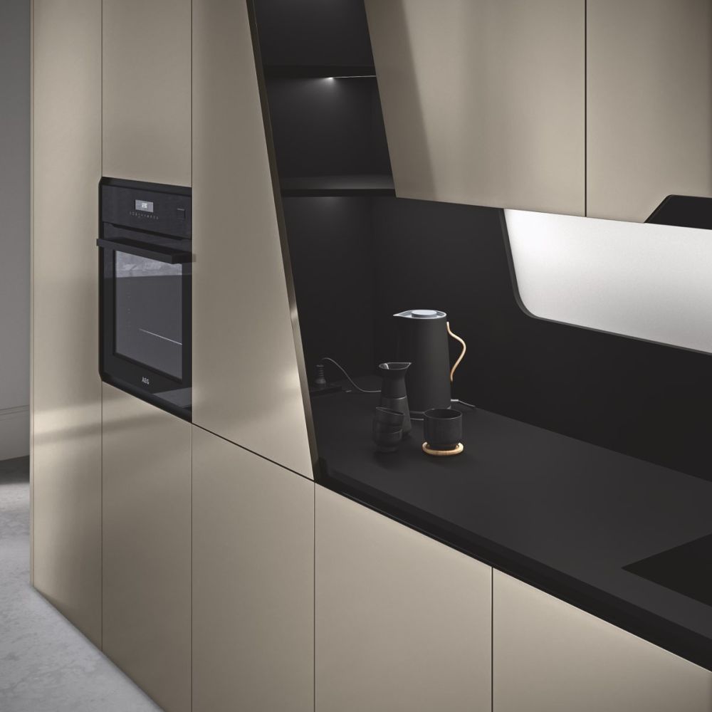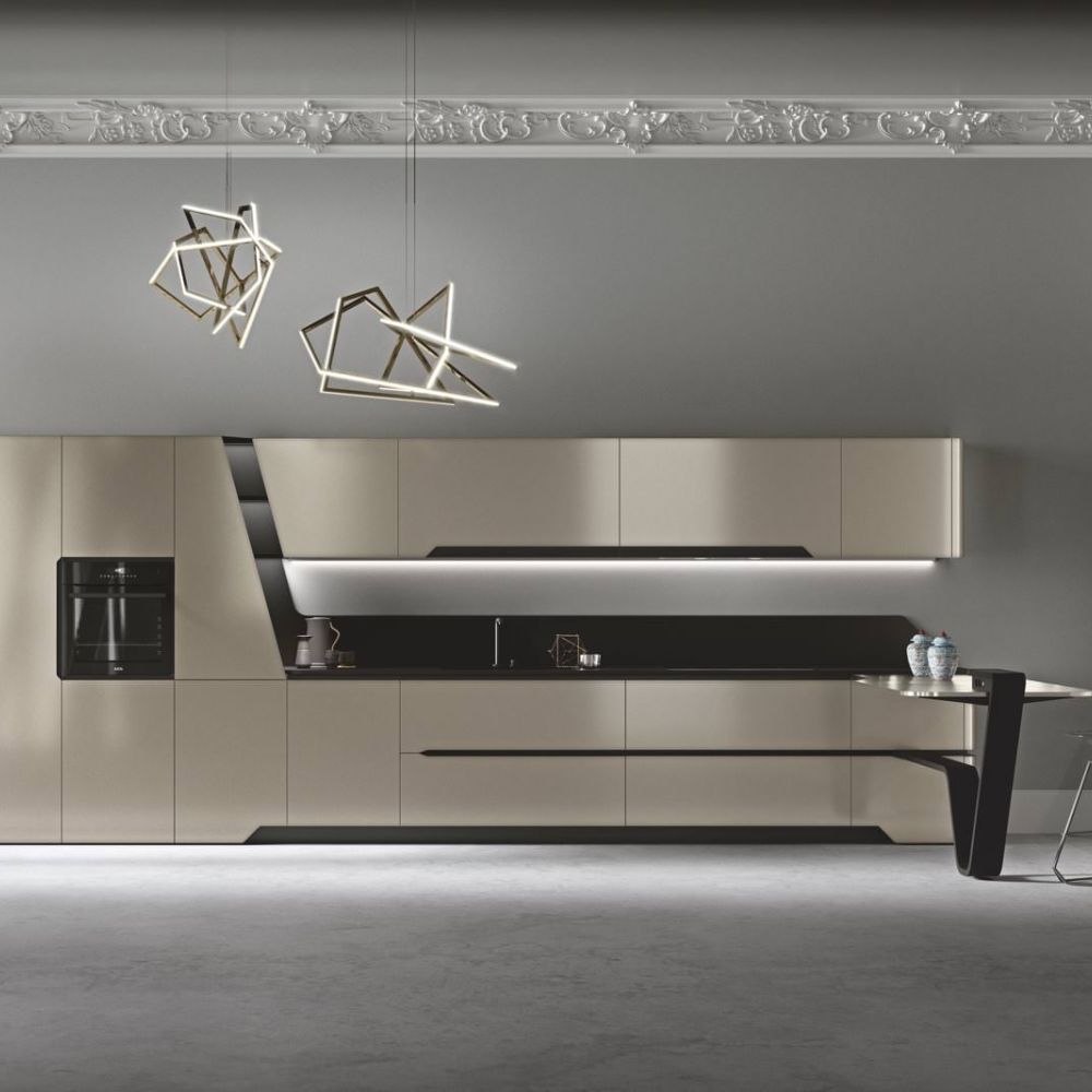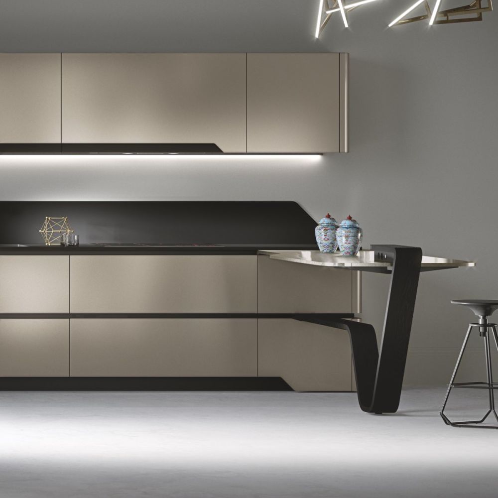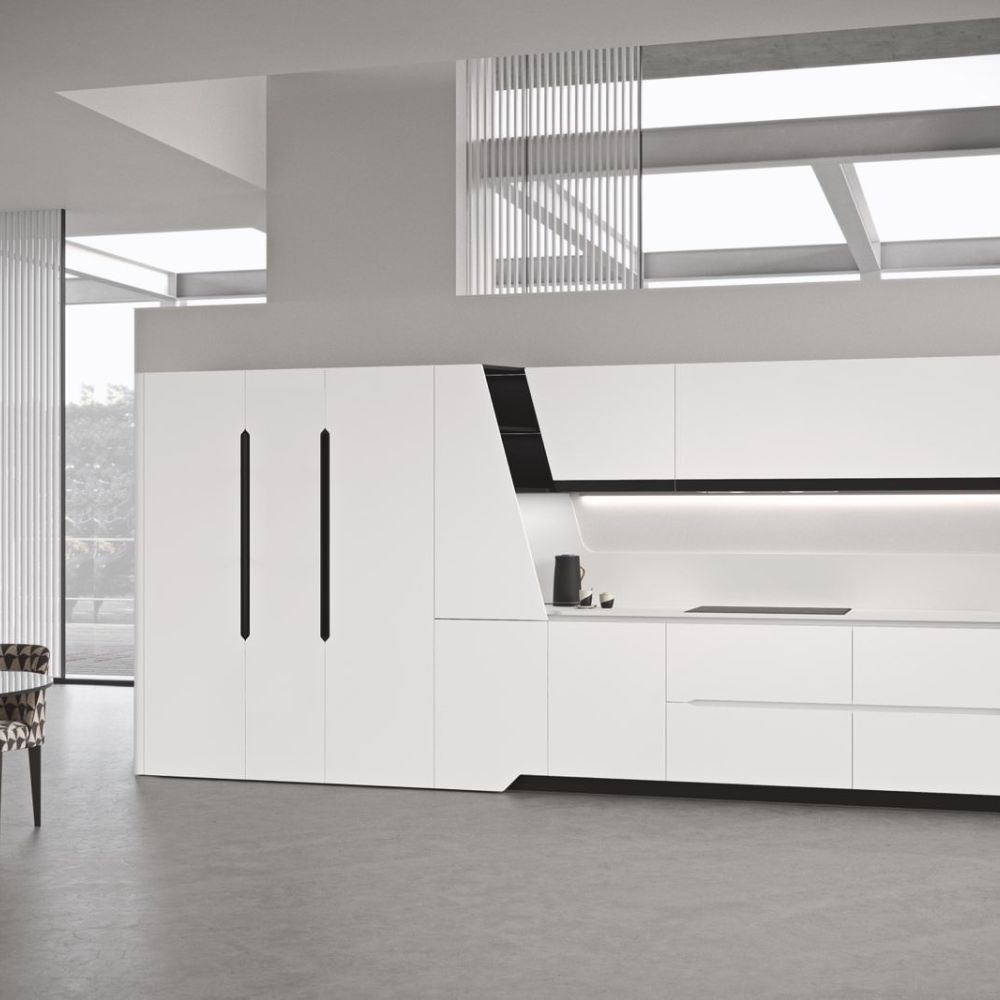 Las geometrías perfectas hacen de esta cocina un lugar de vida y entretenimiento, mientras que la ergonomía se une a la funcionalidad.