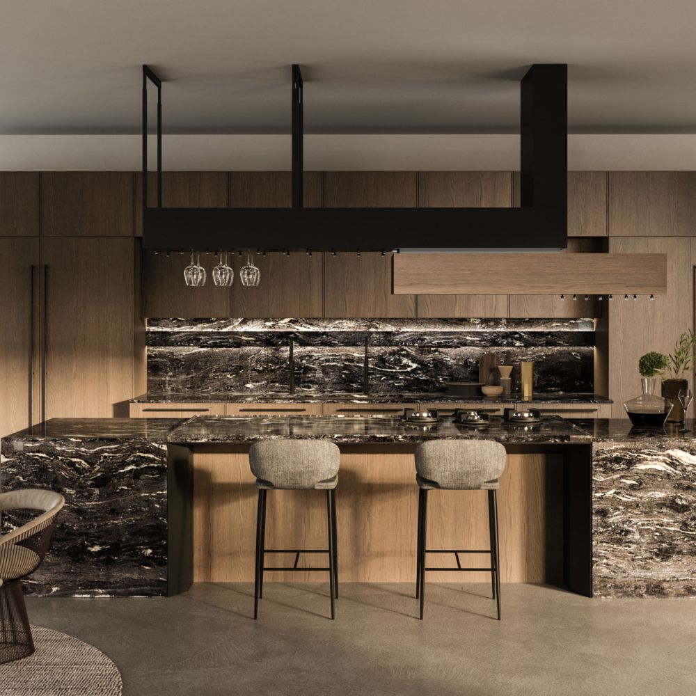 Extensive adaptability and unique matching accessories compliment the frame geometry of the Quadra Kitchen.